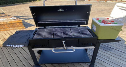 (美式BBQ户外烤炉,干净无碳灰) 一米以上烤炉,减少了户外烧烤碳灰对于野餐体验的影响,超大帆船式遮阳棚,让你不必受烈日暴晒;同时提供恒温箱,无论是放冰袋还是井水,放入的啤酒从开始到结束依然冰爽依旧。